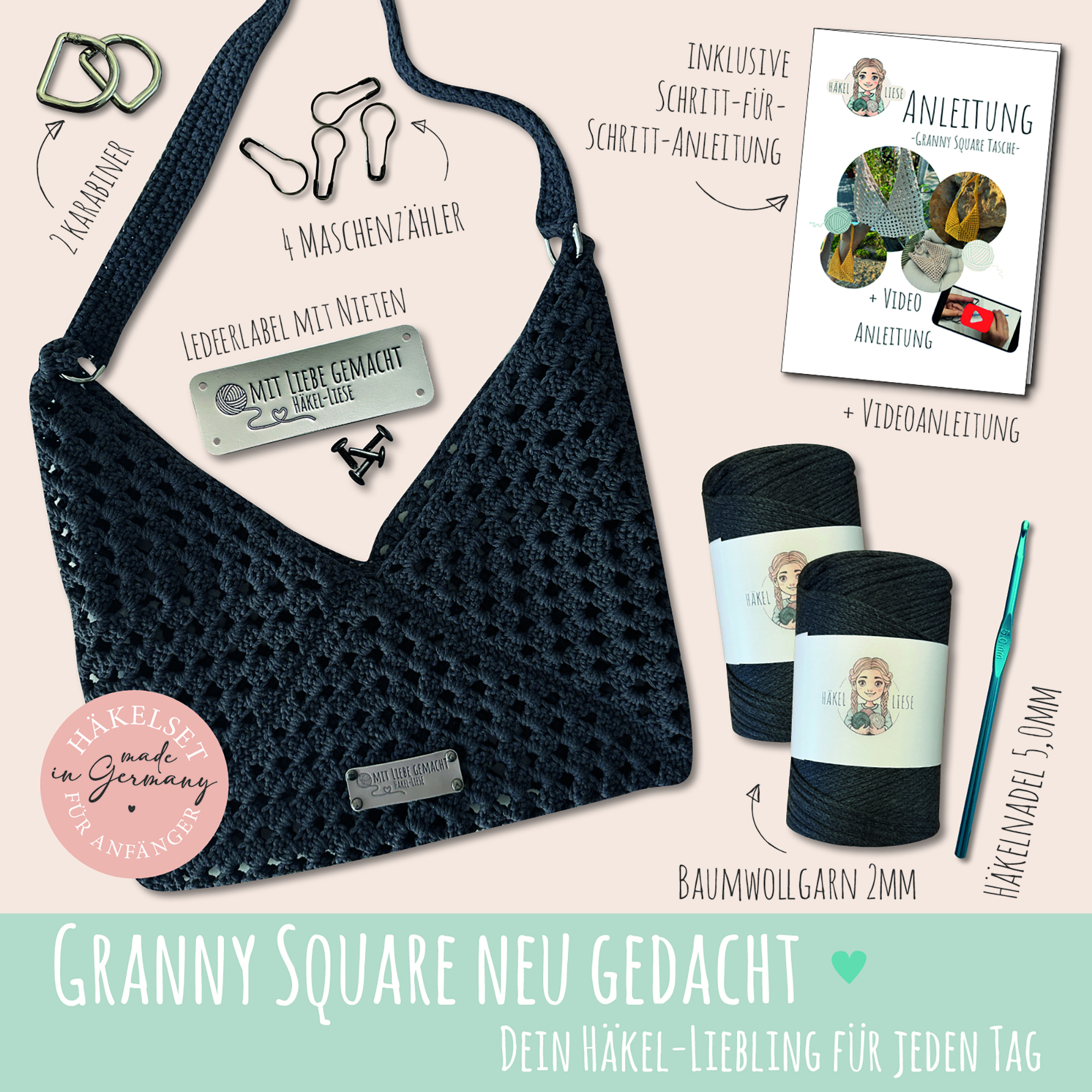 Tags DIY Erwachsene, Granny Square, Granny Square Tasche, häckeln, Häkel-Liese, Häkeln lernen, Häkelset, Häkelset Anfänger, Häkelset für Anfänger, Tasche häkeln